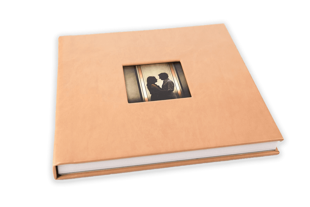 Album Signatura no tamanho 40x40 com 50 páginas com a opção de ter somente uma foto do evento na janelinha do album ou com uma frase personalizada. Possui capa dura com couro sintético, Possibilidade de gravação a laser na capa ou contracapa. Gramatura de 800 e possibilidade de folha de guarda.
