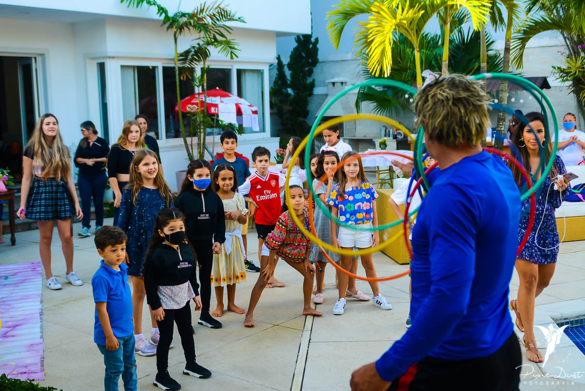 Já a Animação eles normalmente ficam durante toda a festa desde o início para entreter as crianças com brincadeiras, oficinas, jogos e ideias criativas para fazer com que as crianças gastem um pouco de energia durante a festa.