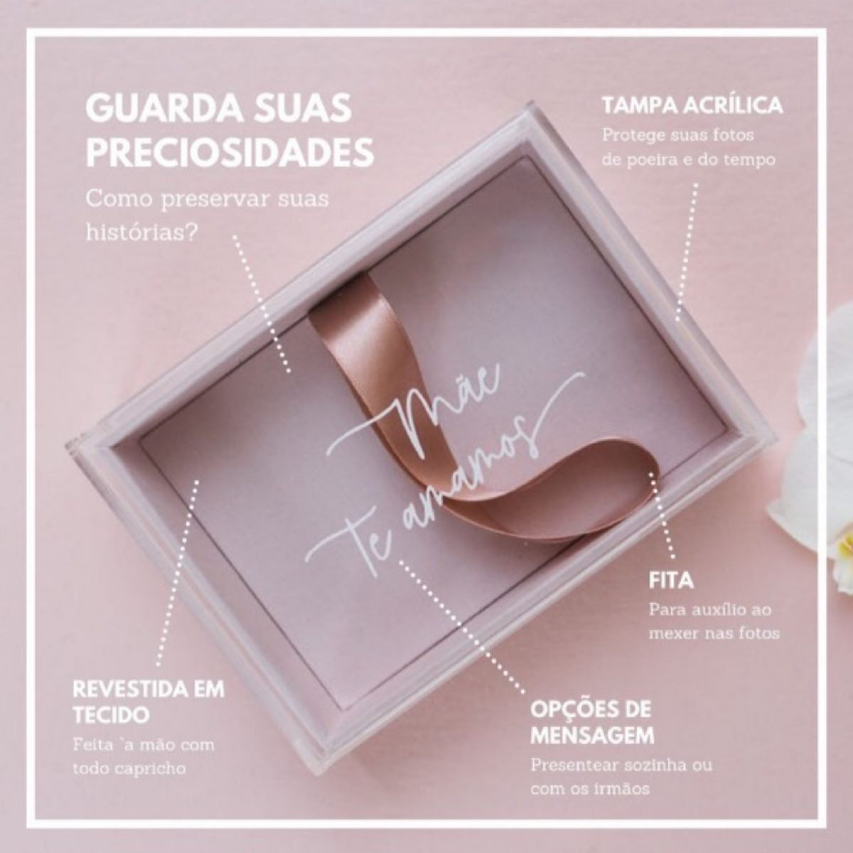 E é por isso que eu agora estou trabalhando com essas lindas caixas de tecido com tampa de acrílico para colocar as suas fotos impressas de família. Porque além de valorizar e imprimir nossas fotos favoritas, também precisamos guardar elas em um lugar que não só demonstre o nosso amor por aquelas memórias mas que também sirva de decoração para deixar a nossa casa ainda mais aconchegante e bonita não é mesmo?
