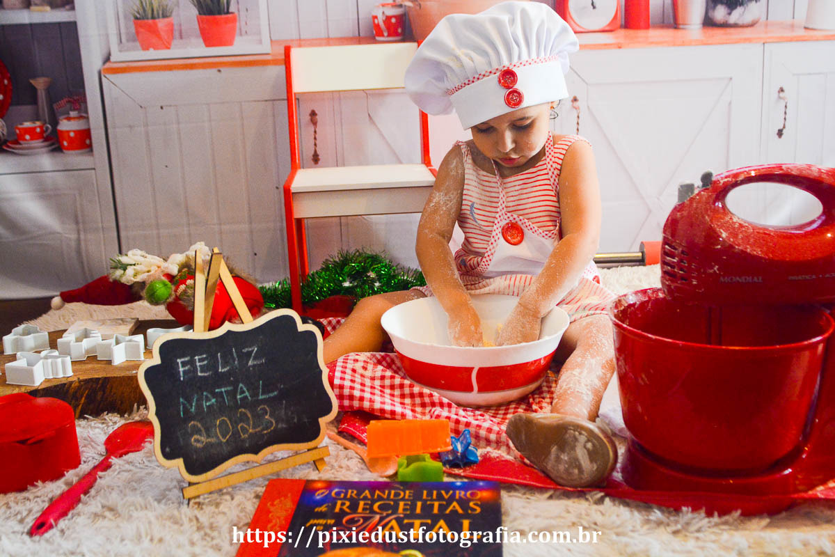 O tema desse ano é Cozinha Natalina e a ideia do Ensaio é para as crianças brincarem de "cozinhar" biscoitos natalinos para o Papai Noel enquanto se divertem muito fazendo muita bagunça com a farinha e decorando panetone com cobertura de chocolate e m & m rendendo fotos super divertidas não só para a criança como também para toda a família já que esse ano temos atividades para todos os membros da família poderem participar com mais interação.